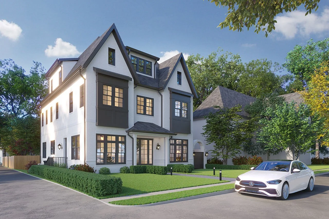 This contemporary Tudor was designed to meet the client’s need for the residence to serve as both a home and a hub for social events. The thoughtfully programmed interior spaces open to a private pool and cabana in the rear yard. Slate shingles and ornamental brickwork bring a timeless elegance to this modern build.